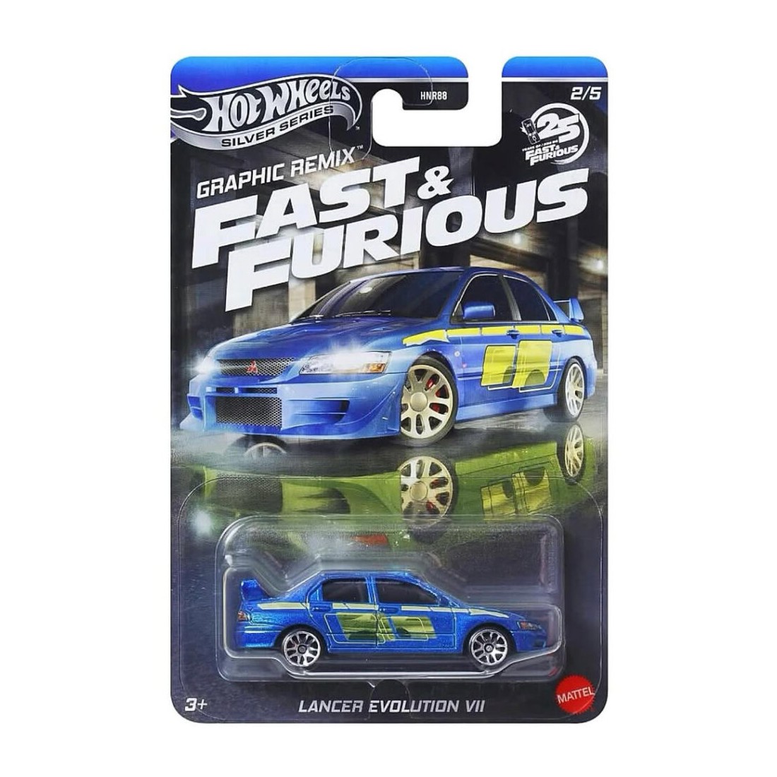 MITSUBISHI LANCER EVOLUTION VII GRAPHIC REMIX FAST & FURIOUS HOT WHEELS SILVER ESCALA 1:64