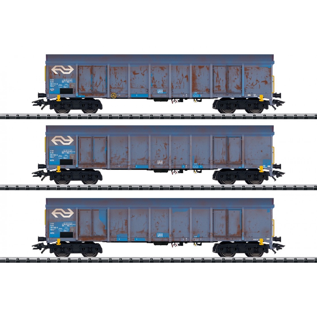 Juego de vagones gondola para el transporte de astillas de madera NS Trix 24367 escala H0.