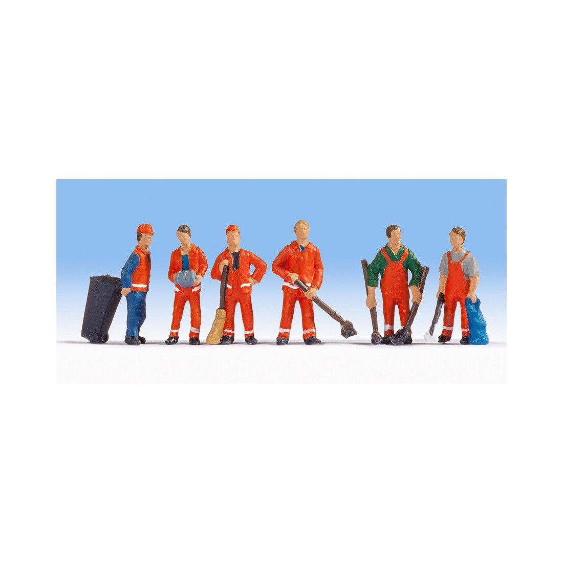 El set de figuras "Limpiadores de la Ciudad" pintado a mano contiene 6 Limpiadores de la Ciudad con diversos accesorios. Nada le da más vida a tu maqueta que las realistas figuras de Noch para cada escena. Este set de figuras de escala N contiene 6 piezas.